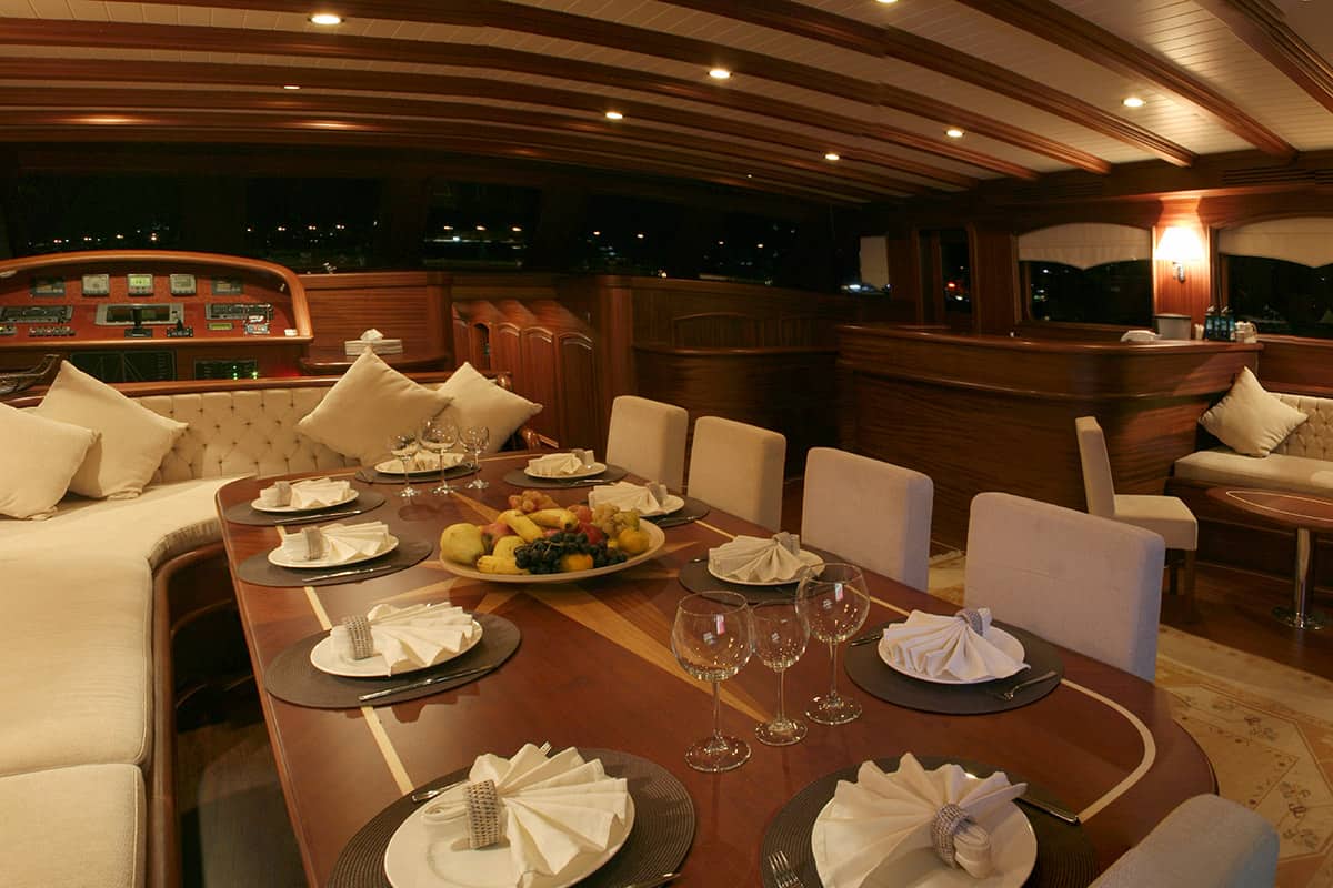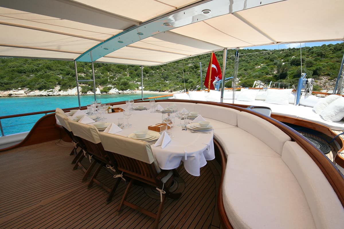 The attentive crew and professional captain have spent years sailing all over the Mediterranean and they will do their best to ensure you have an unforgettable experience. While Chef on board will take care of your menus and amaze you with his skills of preparing delicious Turkey and Greece-inspired menus. Relax and dine with your family and friends on the deck or inside in the spacious air-conditioned salon. Meal plans are available and all menus are tailored to guests’ dietary requirements.