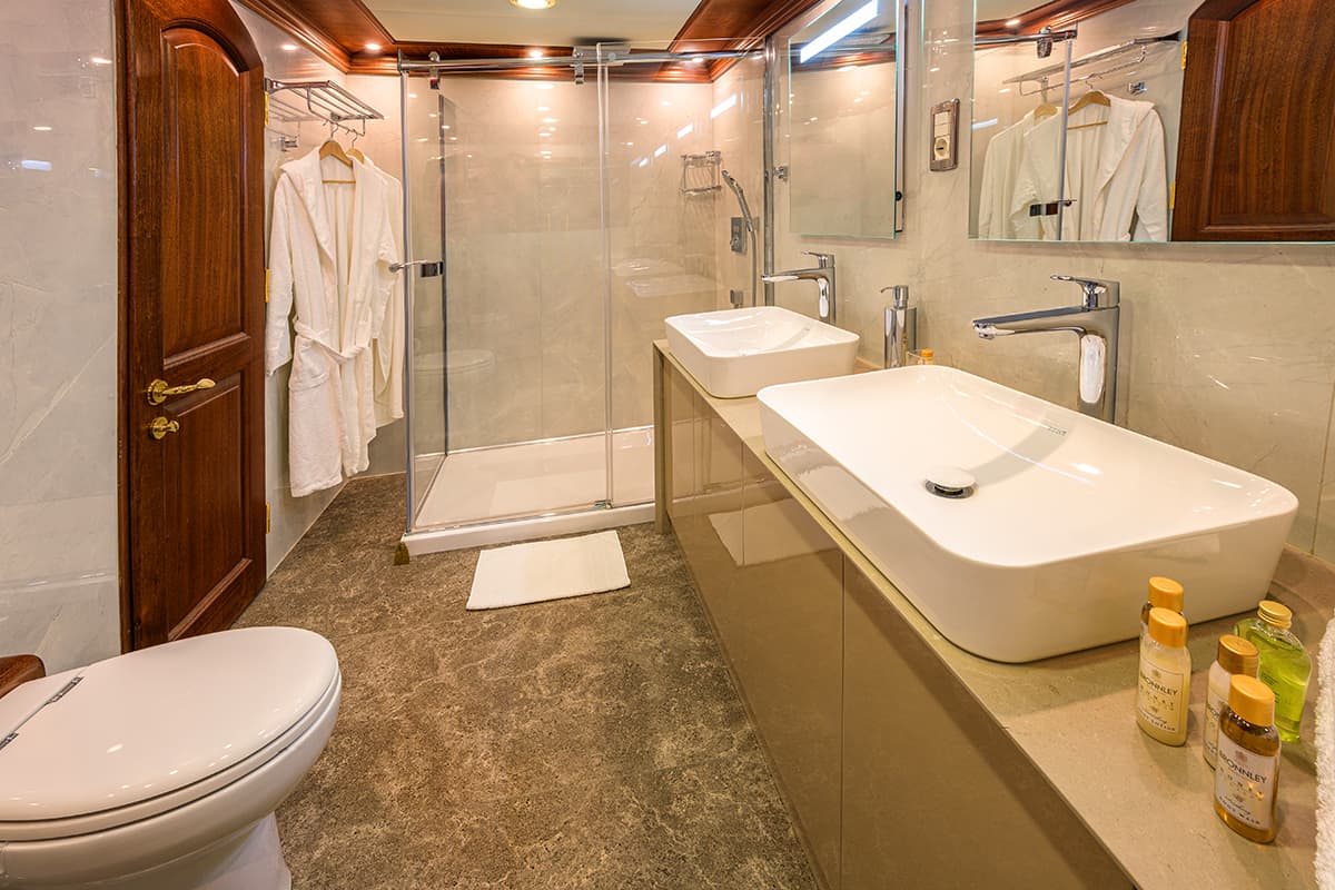 Gulet Kaptan Kadir is like a 5-star hotel on the water with an authentic reconstruction of a traditional Turkish schooner-style gulet. Attentive personalized service on board is to be expected since you will be taken care of by a professional crew of 7. They will be at your disposal at any time for whatever you might need for an amazing holiday and comfort on board.