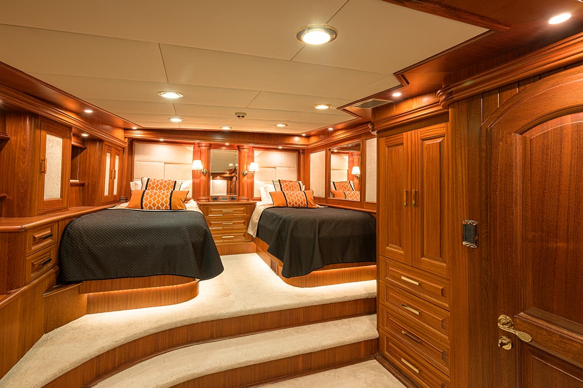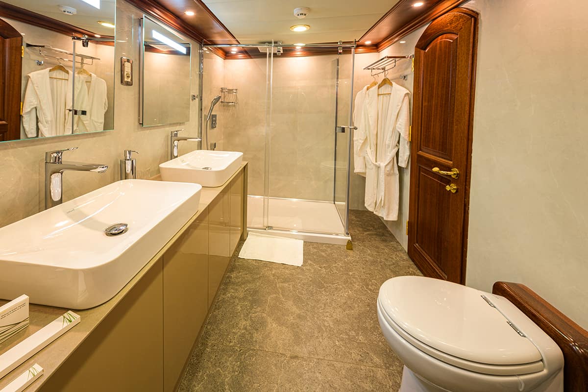 - 5 Master cabins-Cabin with double bed. Private bathroom with hydro-massage shower and home type toilet.