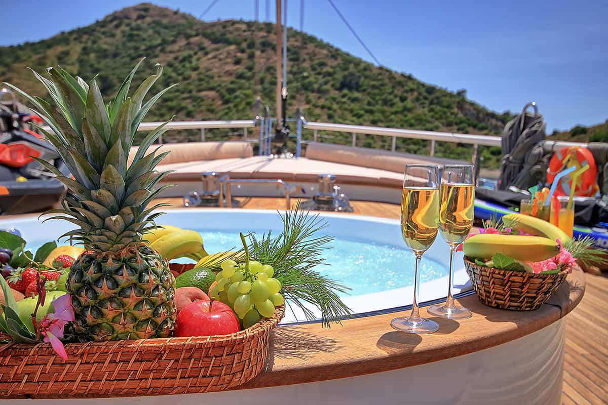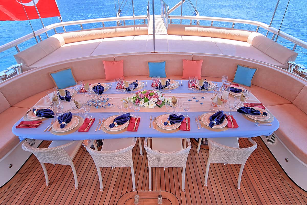 This luxurious gulet will come with a professional crew as well. The crew onboard will do everything to make you feel comfortable and provide you with high-end service.