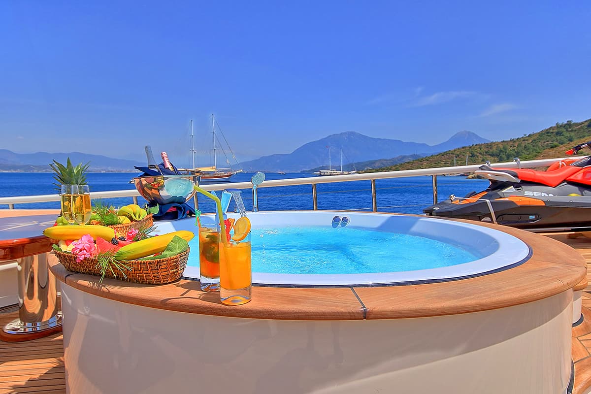 Tender boat, Water skiing: fuel per usage, Jetski: 250€ + fuel per usage, Ringo ride: fuel per usage, Wakeboard: fuel per usage, Canoe, Paddleboard, Windsurfer, Sun mattresses, Jacuzzi on deck, Sun sail for shade in front of the gulet, a Leisure area in the backside of the deck, Barbecue, Fishing equipment for kids, Sets of masks, snorkels, and flippers…
